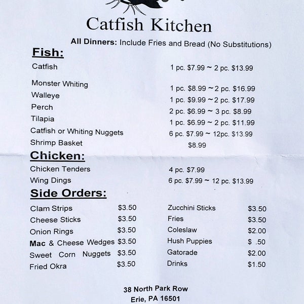 catfish kitchen 38 n park row in erie restaurant menu and reviews