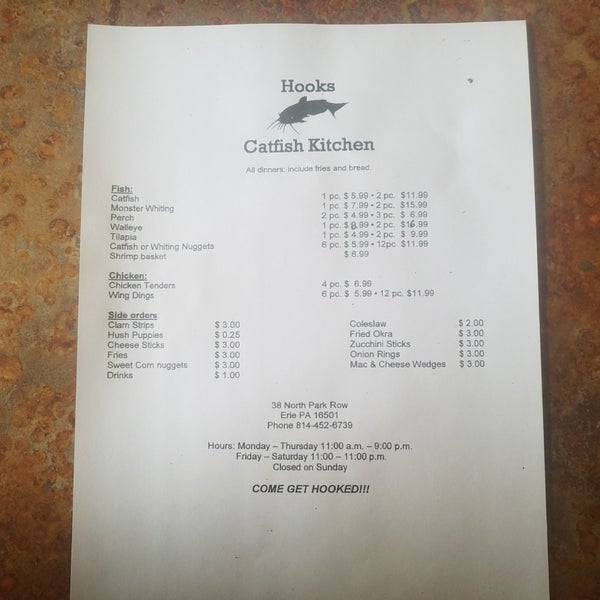 hooks catfish kitchen 21 reviews seafood 38 n park row erie pa united states restaurant reviews phone number menu