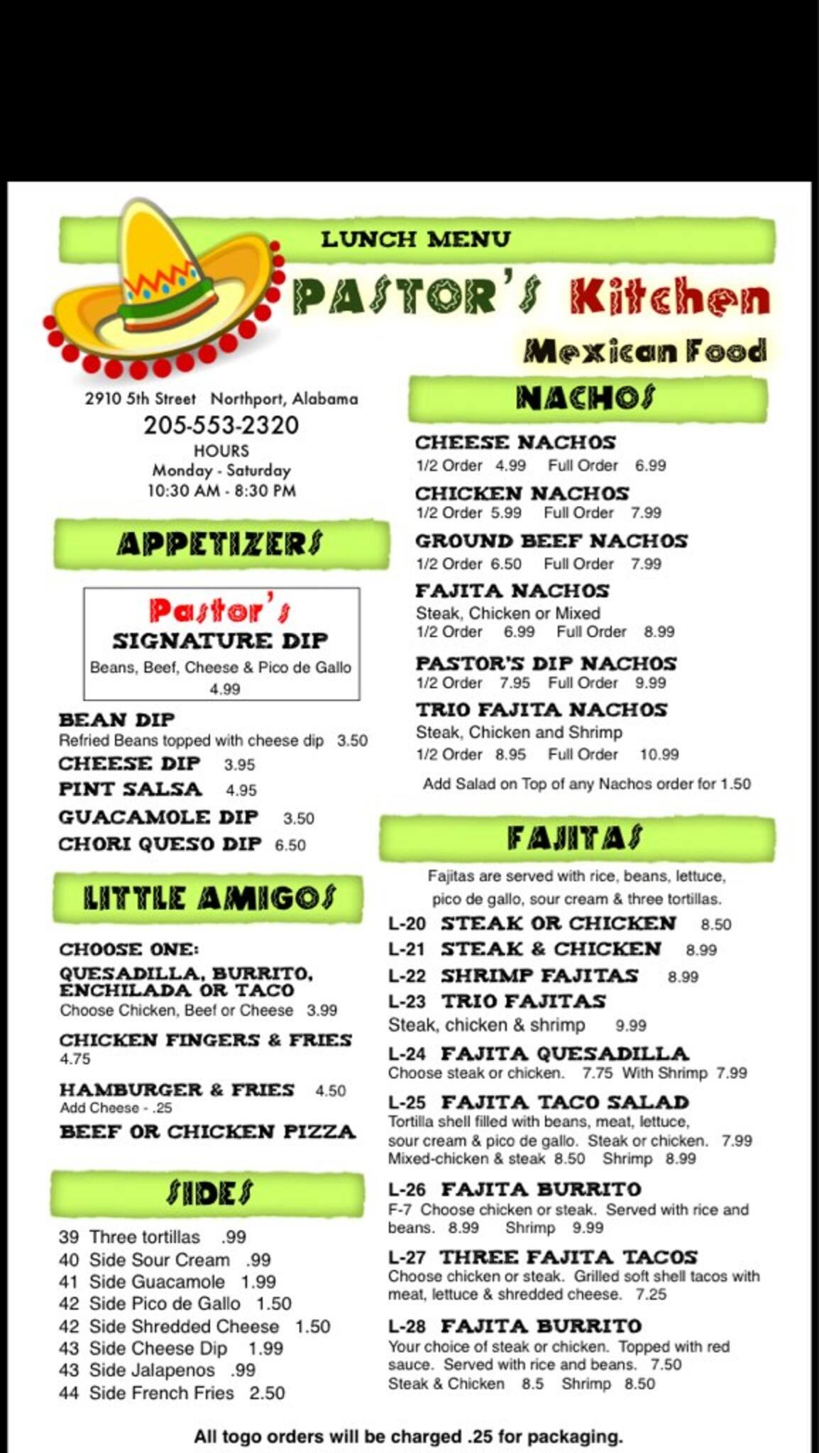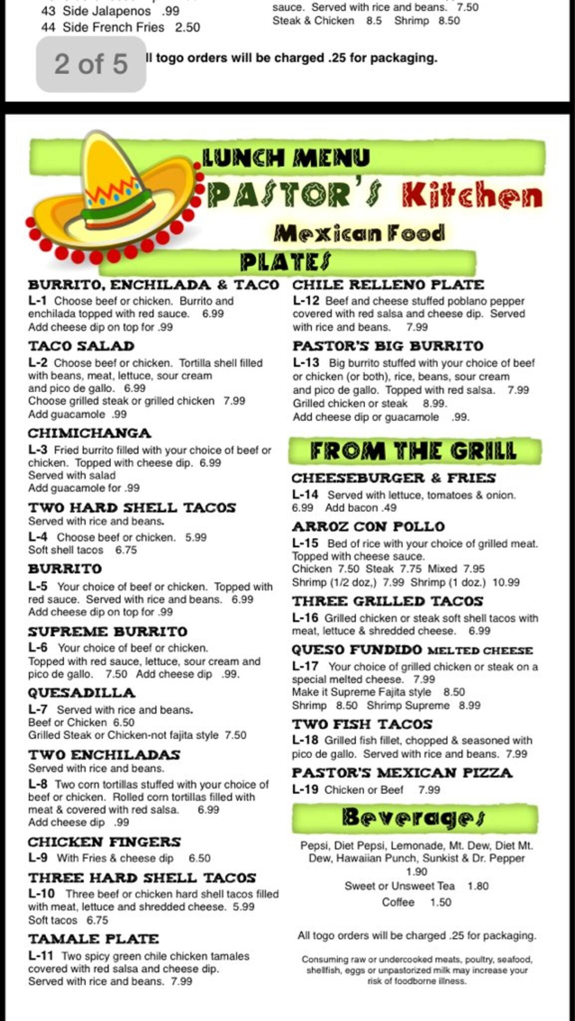 pastors kitchen menu